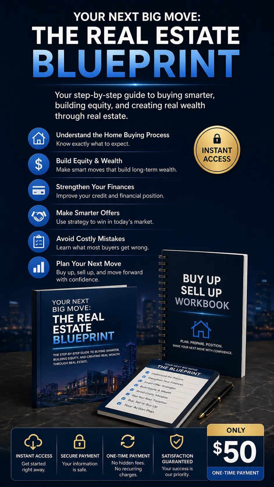 This blueprint gives you the step-by-step guidance you need to understand the home buying process, build equity, strengthen your financial position, structure smarter offers, and avoid costly mistakes. Whether you’re a first-time buyer or preparing for your next move, this resource helps you stop guessing and start winning..